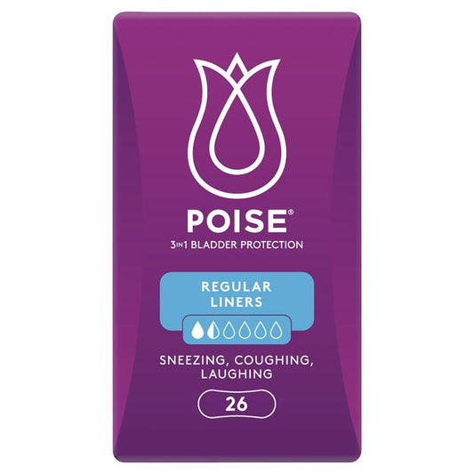 Poise 26-pack bladder leak liners – 3-in-1 absorbency, dryness & odor control