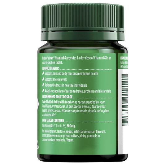 Nature's Own Vitamin B3 500mg - 60 Tablets for Energy & Skin Health