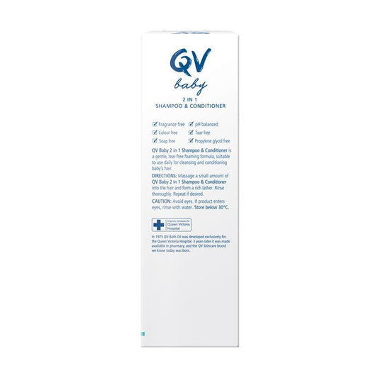 Qv baby 2 in 1 shampoo & conditioner - 200g for gentle cleansing