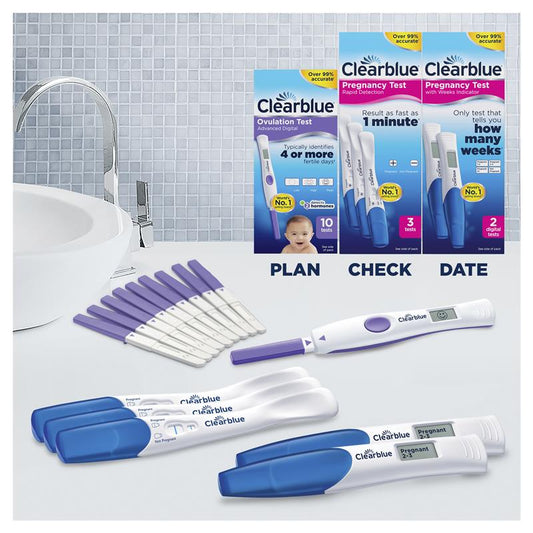 Clearblue plan+check+date value pack – 10 ovulation & 5 pregnancy tests