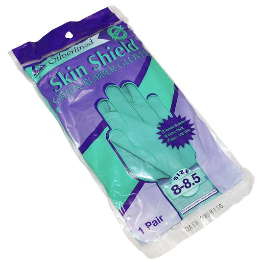 Skin Shield Silver Lined Natural Rubber Gloves - Vanilla Scented, Green, Size 8-8.5