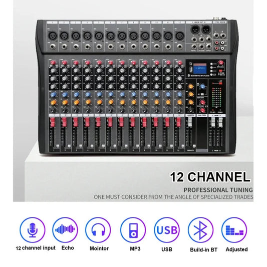Hridz 12 channel mixing console live studio audio dj mixer sound board usb interface