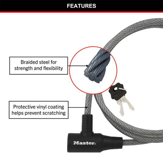 Master lock keyed cable lock 10mm x 1.8m braided steel durable