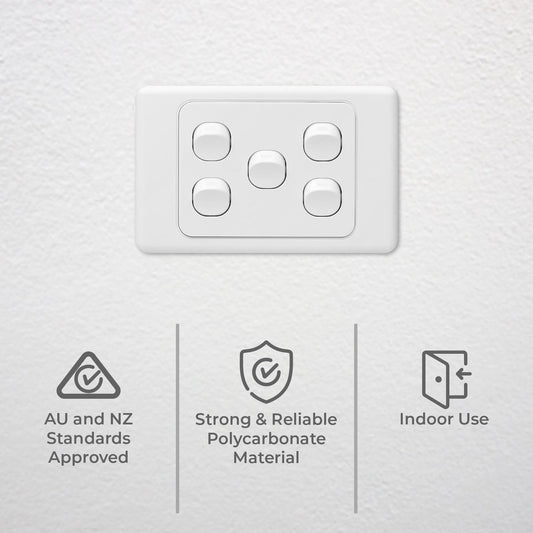 DETA Five Gang Switch - 5 Gang - Polycarbonate - Multiple Switching Options