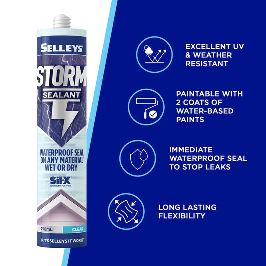 Selleys clear storm sealant 290ml waterproof advanced polymer instant seal