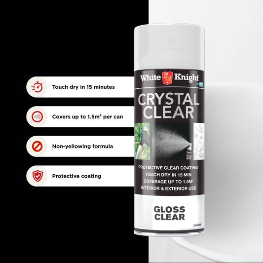 White Knight Crystal Clear Gloss Acrylic Spray Paint 310g Durable Finish