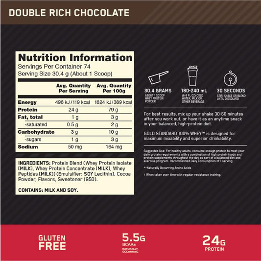 Optimum Nutrition Gold Standard 100% Whey Protein - Double Rich Chocolate (2.27kg)