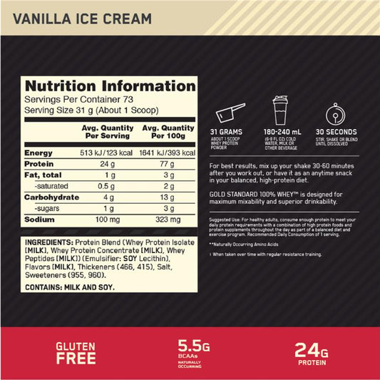 Optimum Nutrition Gold Standard 100% Whey Protein - Vanilla Ice Cream 2.27kg