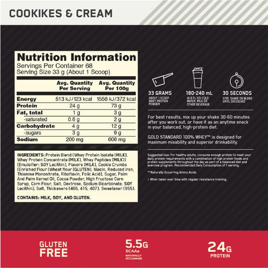 Optimum Nutrition Gold Standard 100% Whey Protein - Cookies & Cream (2.27kg)