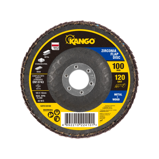 Kango 100mm 120G Zirconia Flap Disc, Self-Sharpening, Enhanced Material Removal