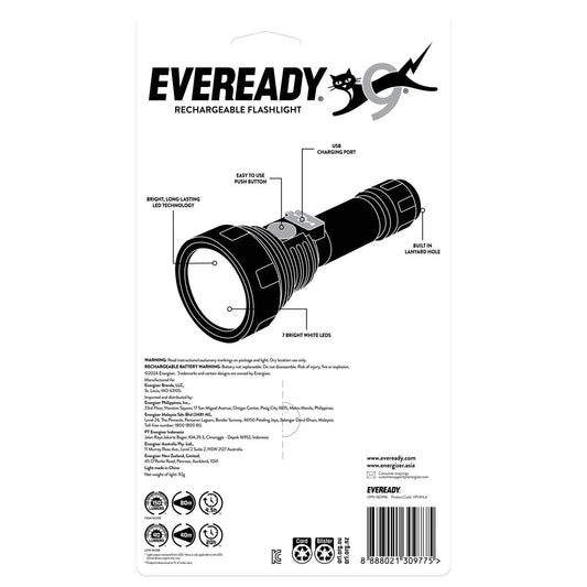 Eveready Rechargeable Torch 150 Lumen, USB Charging, Multiple Modes, High Brightness