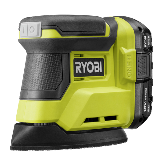 Ryobi 18v one+ palm sander kit, compact design, 2.0ah battery, dust management