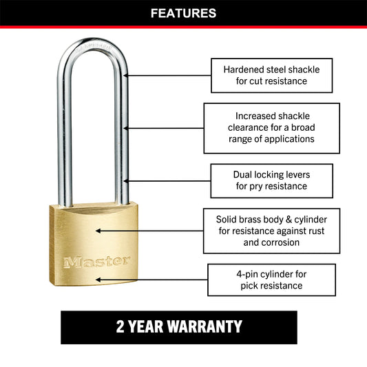 Master Lock 30mm Brass Padlock, Corrosion-Resistant, Hardened Steel Shackle, 2 Keys