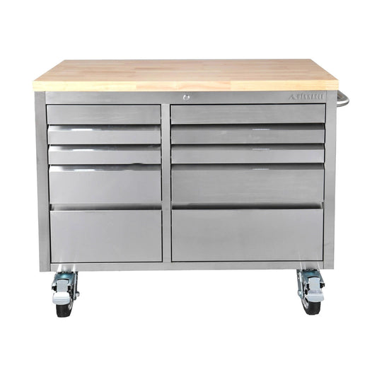 Pinnacle 107cm Stainless Steel Tool Trolley with Rubber Wood Top & Lockable Drawers