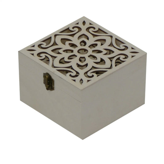 Boyle Plywood Square Boxes Set of 3 with Laser Cut Flowers, Craft & Decor