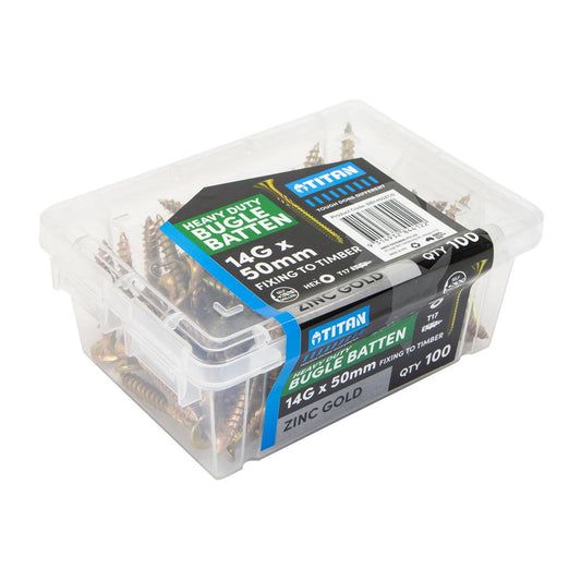 Titan 14G x 50mm Zinc Gold Bugle Batten Screws - 100 Pack, Corrosion Resistant