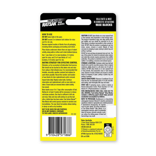 Ratsak 80g Fast Action Wax Blocks - Quick Rodent Control, Indoor/Outdoor Use
