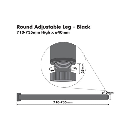 Adoored Black Metal Round Furniture Leg 40x710mm, Easy Install, Modern Design