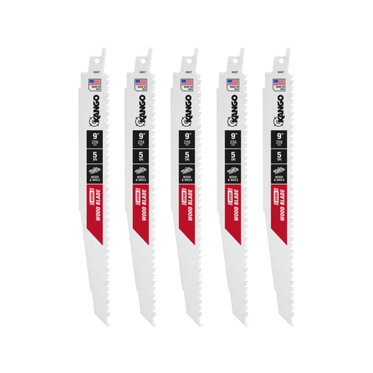 Kango 9” wood demo reciprocating saw blade 5-pack, 5 tpi, sabre tooth design, nail protection