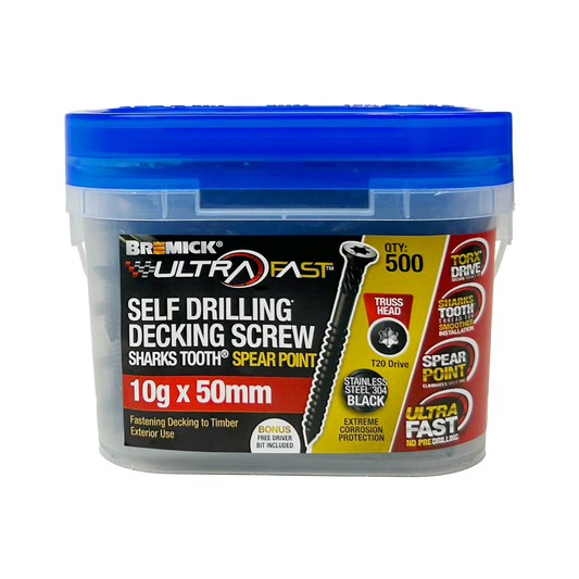 Bremick Ultrafast 10g x 50mm Black Stainless Steel T20 Truss Head Screws - 500 Pack
