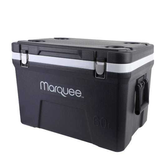 Marquee 45l insulated hard cooler with superior insulation, sturdy handles, and cup holders