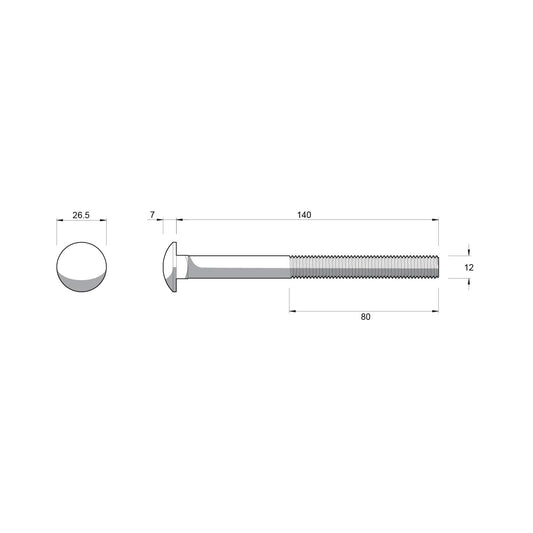 Zenith m12 x 140mm galvanised cup head bolts & nuts, corrosion resistant, as compliant