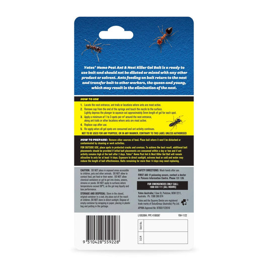 Yates ant & nest killer gel bait 10g - indoor/outdoor, sugar-based, professional formula