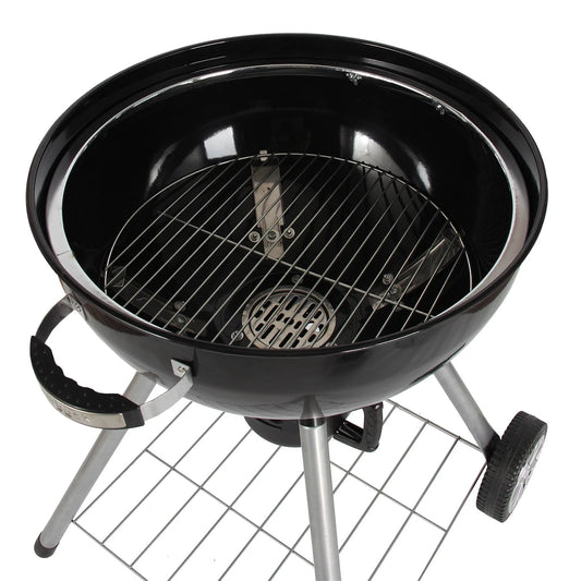 Jumbuck 57cm black phoenix charcoal kettle bbq with porcelain enamel, wheels, thermometer