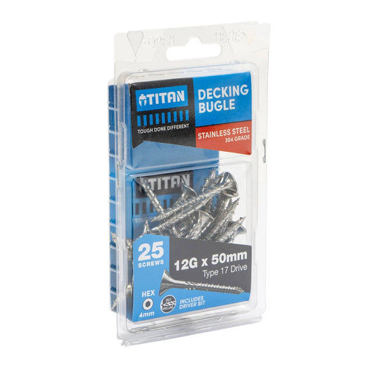 Titan 12G x 50mm Decking Bugle Screws 304 Stainless Steel Pack of 25
