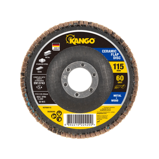 Kango 115mm 60G Ceramic Flap Disc for Metal Grinding with Self-Sharpening Properties