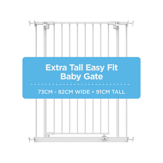 Perma Child Safety Extra Tall Baby Gate 73-82cm White, Easy Fit, Pet Friendly, One-Hand Release