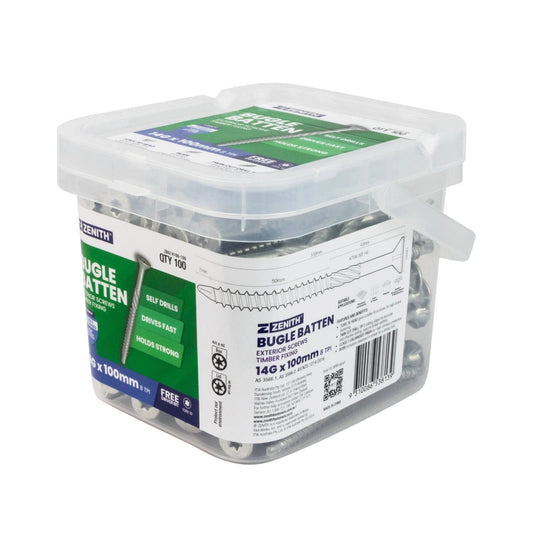 Zenith 14g galvanised bugle batten screws 8x100mm torx 30 head - 100 pcs