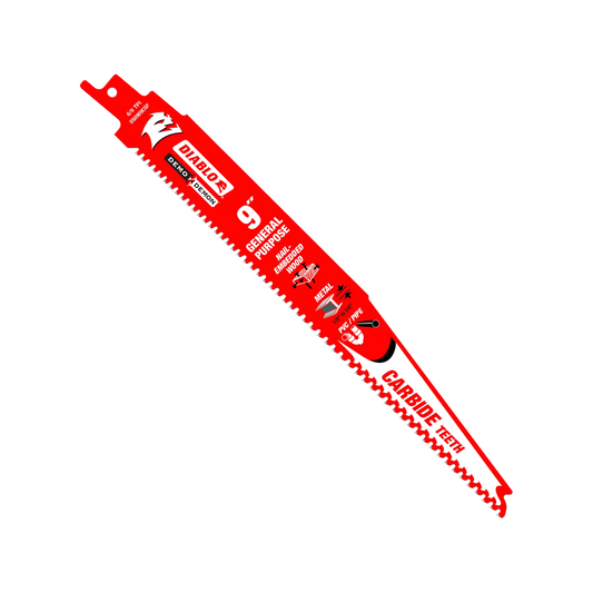Diablo 9" carbide reciprocating saw blade - long life, fast cuts, wood & metal