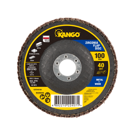Kango 100mm Zirconia Flap Disc 40G, Self-Sharpening, High Removal Efficiency