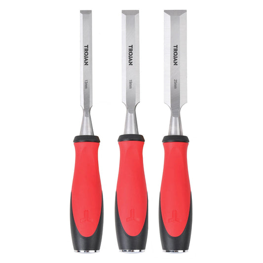 Trojan 3pc chisel set - 13mm, 19mm, 25mm, full tang, ergonomic grip, lifetime warranty