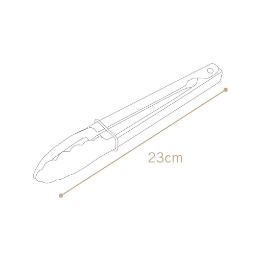 BBQ Stainless Steel Short Lockable Tongs with Scalloped Teeth, 23cm for Cooking & Serving