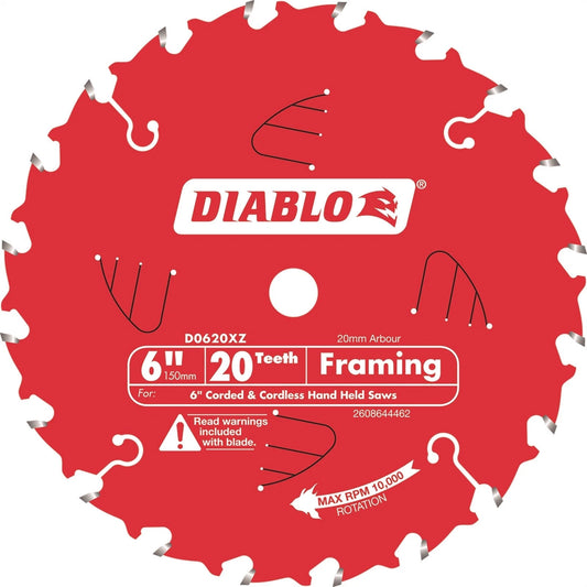 Diablo 150mm 20T Cordless Circular Saw Blade, TiCo Carbide, Non-Stick Coating