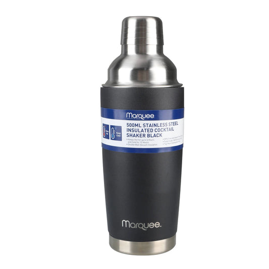 Marquee 500ml Black Stainless Steel Insulated Cocktail Shaker - Leak-Proof, Easy to Clean