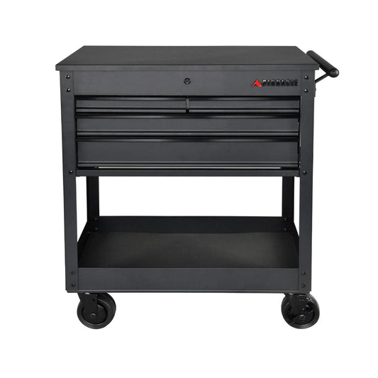 Pinnacle 79cm Black Matte Service Cart with Soft Close Drawers & Heavy Duty Castors