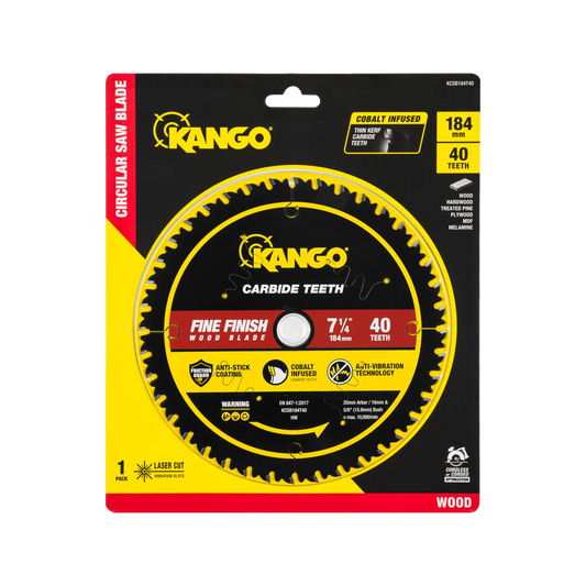 Kango 184mm 40T Wood Circular Saw Blade, Cobalt-Infused, Anti-Stick, Anti-Kickback