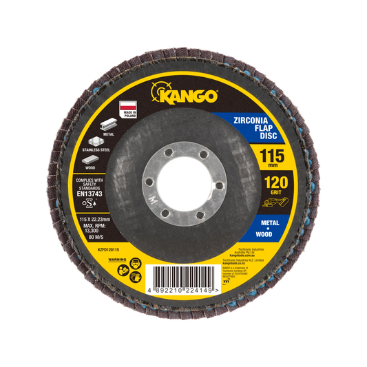 Kango 115mm 120G Zirconia Flap Disc, Self-Sharpening, Enhanced Material Removal