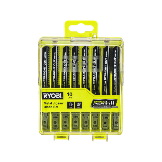 Ryobi 10 Piece Bi-Metal Jigsaw Blade Set for Metal & Plastic Cutting, Universal Fit