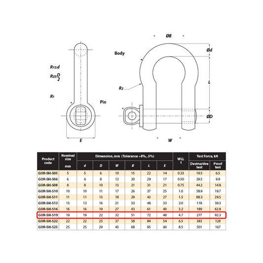 Gorilla 19mm 4.75t grade s alloy lifting bow shackle as2741 compliant