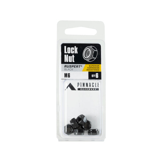 Pinnacle M6 Black Ruspert Nylon Lock Nut 6 Pack - Corrosion Resistant, Secure Fastening