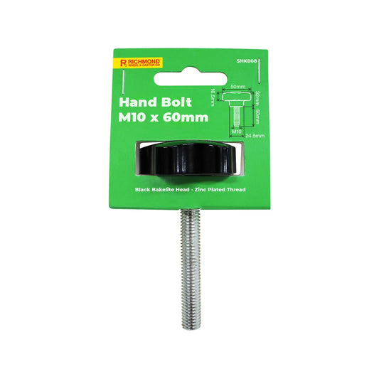 Richmond m10 x 60mm zinc-plated hand bolt with black bakelite head, 5-lobe design