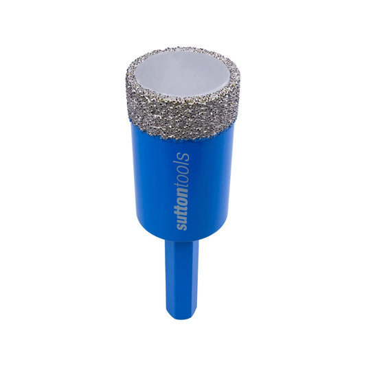 Sutton Tools 12mm Diamond Core Drill Bit Wet & Dry, #40 Grit, Wax Filled, Hex Shank