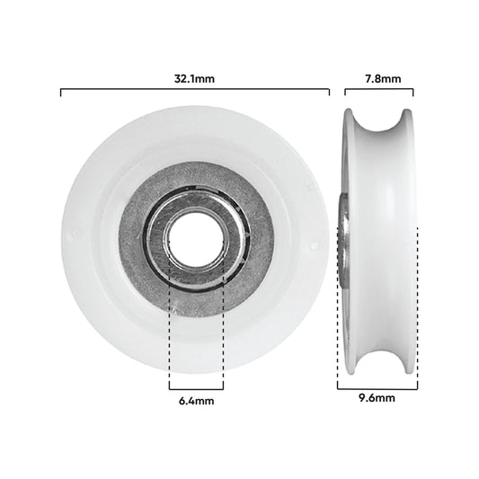 Rolltrak 32mm Acetal Concave Roller for Patio Doors, 25kg Load Capacity, Easy Installation