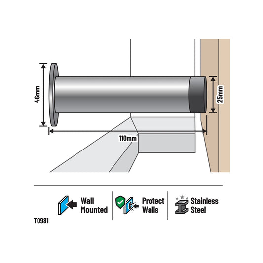 Adoored 110mm Stainless Steel Round Tube Door Stop, Easy Install, Wall Protection, Indoor Use