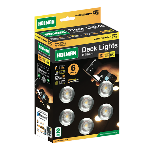 Holman 45mm Warm White Deck Light 6 Pack Stainless Steel Waterproof