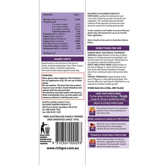 Richgro Plus Garden Complete Fertiliser 5kg Fertiliser Deep Watering